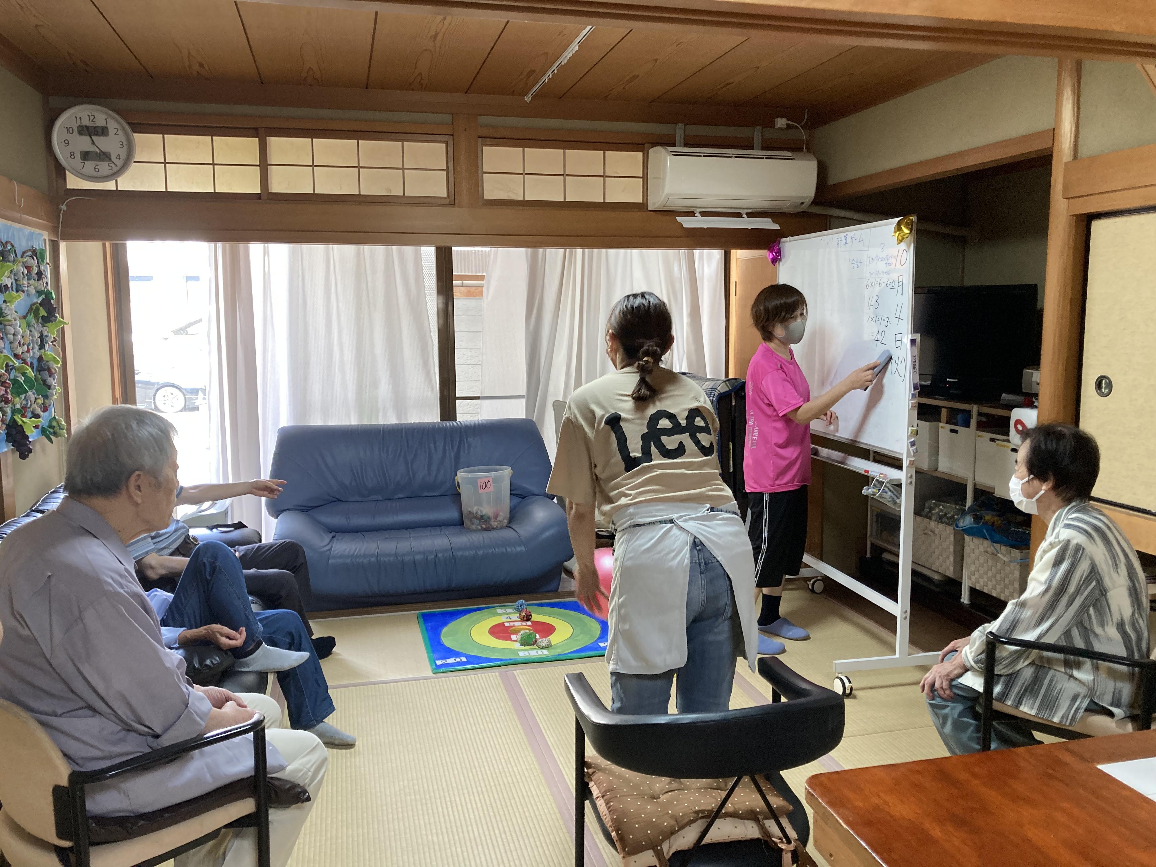 利用者様と談笑したり脳トレをしたり、