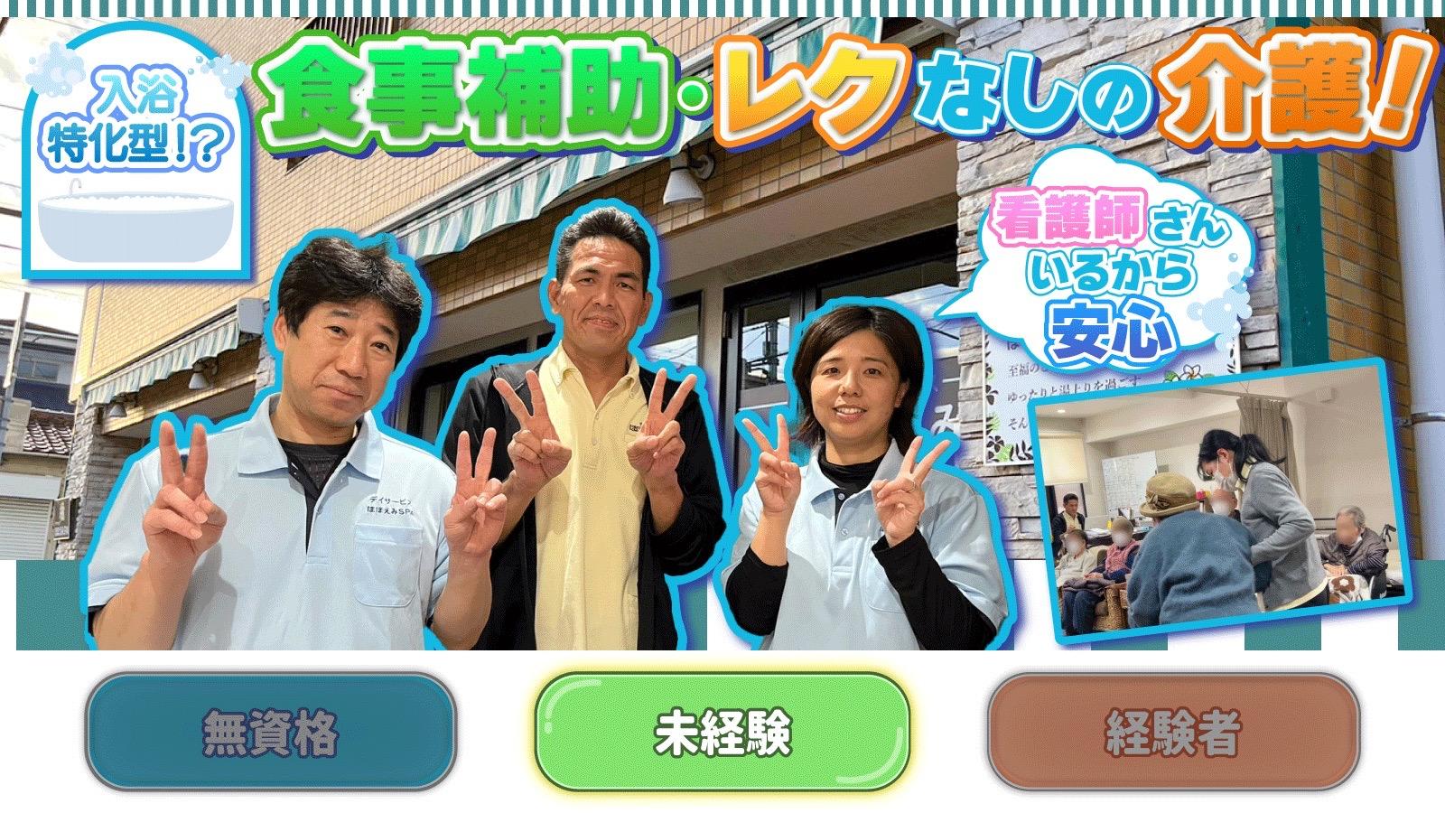 | 求人タイトル | 【デイサービスほほえみSPA】介護職員(パート) |