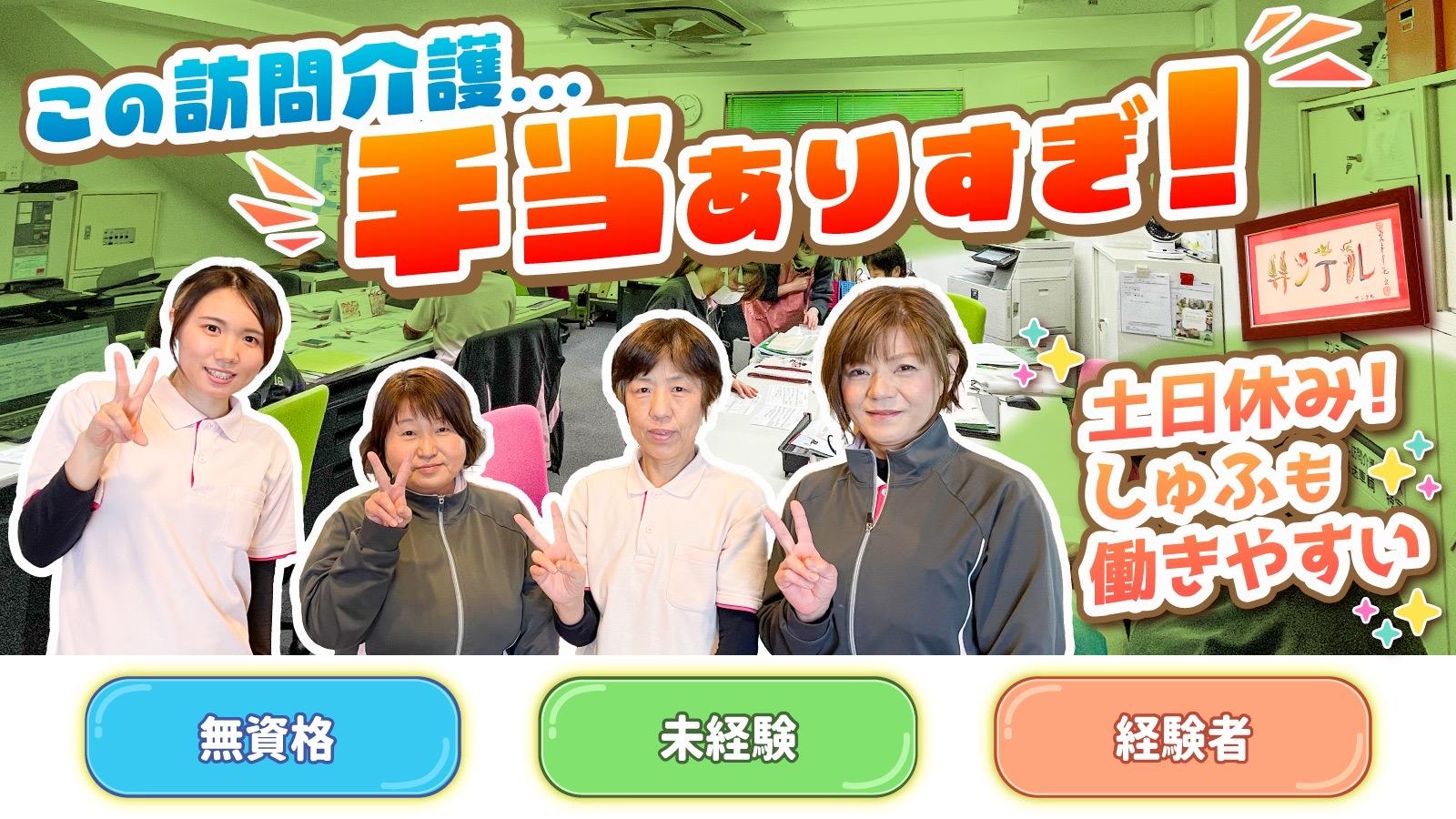 | 仕事内容 | 身体介護や生活援助などの 訪問介護業務全般をお任せします。 |