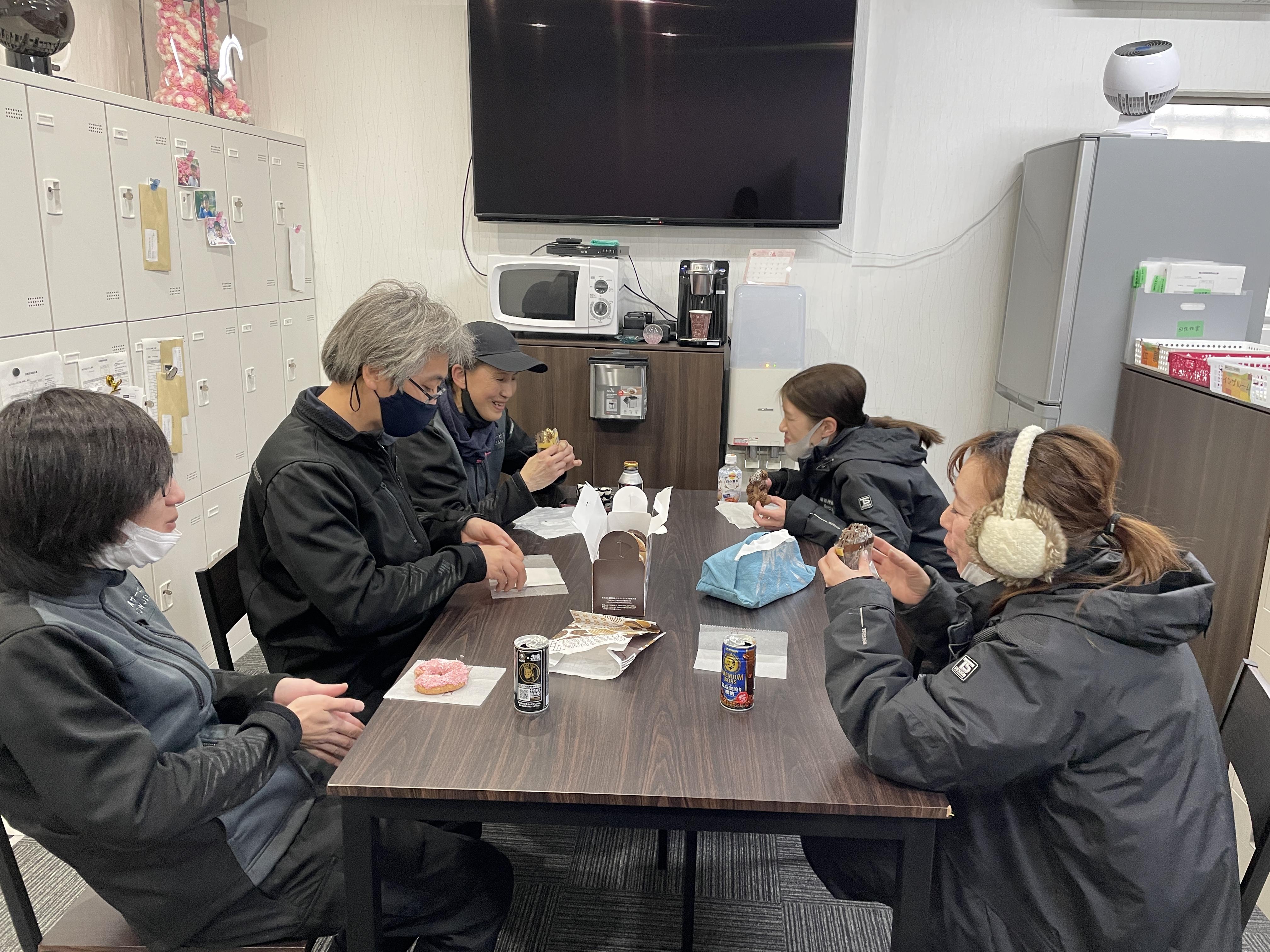 休憩時間はみんなでおやつ片手に