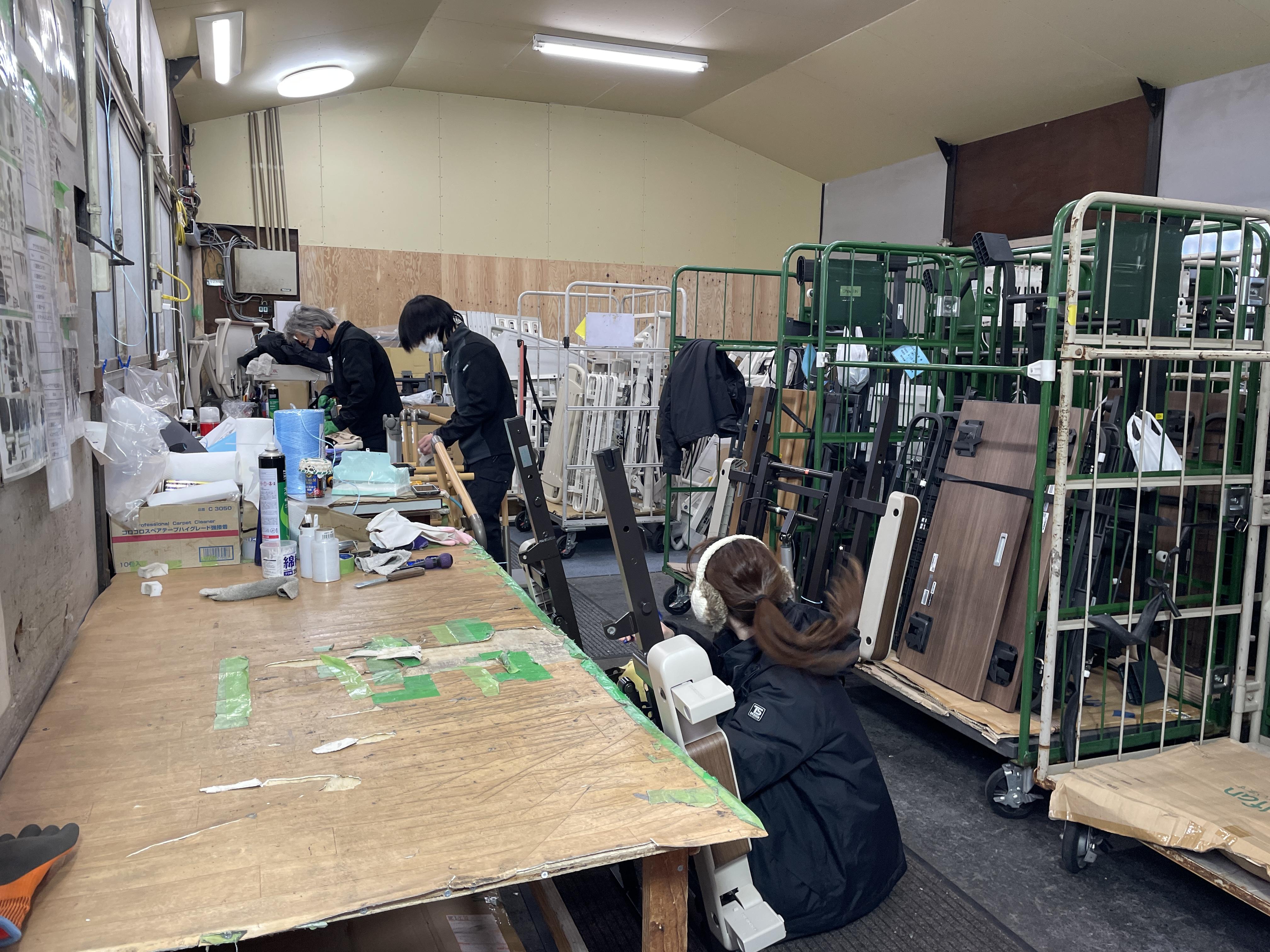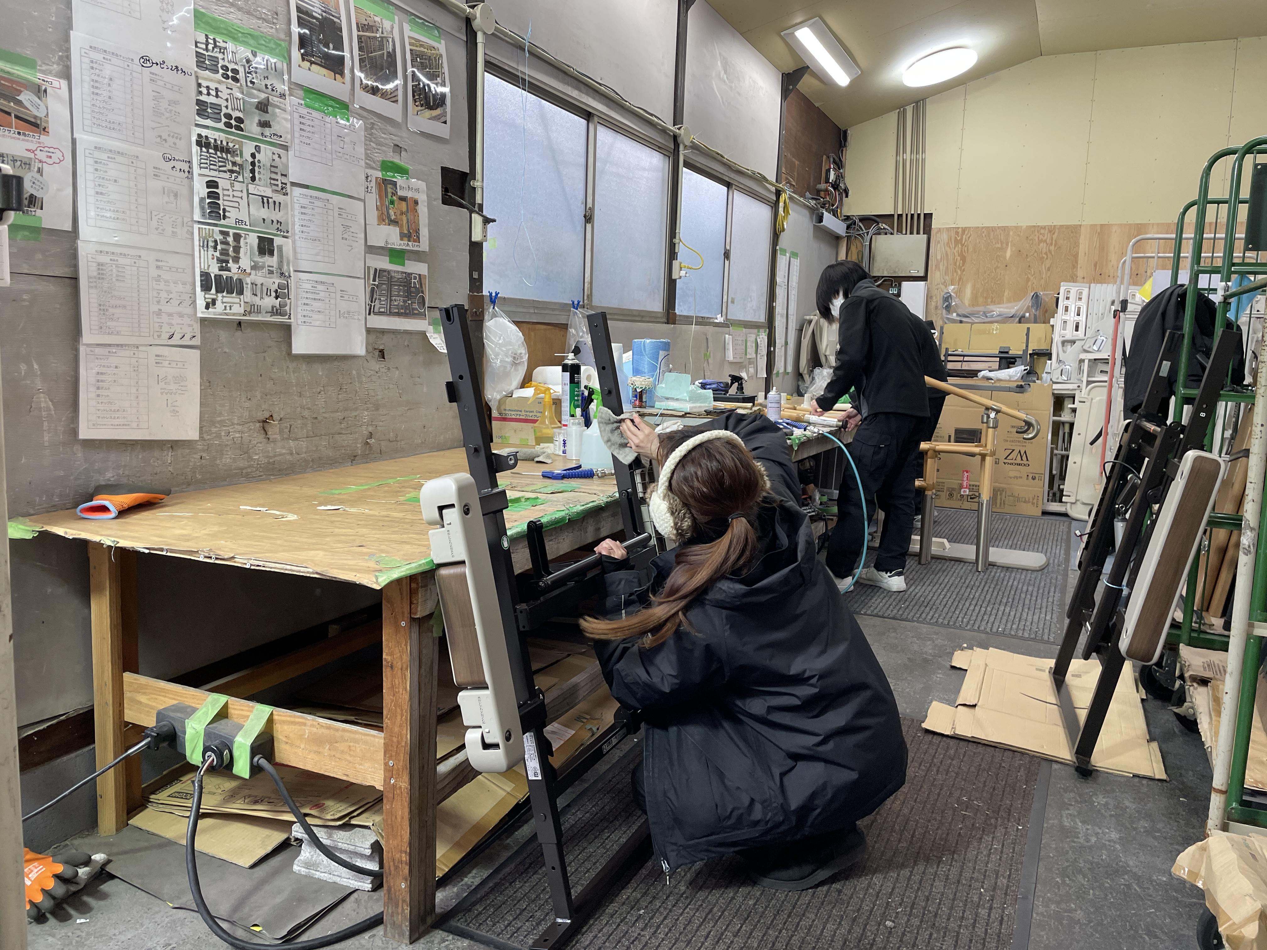 | 仕事内容 | 福祉用具の洗浄・梱包をお任せします。 ▼具体的には… ・車椅子の洗浄 ・手すりの分解→チェック→洗浄→再度組み立て・梱包 電話応対や接客業務は無く、 作業に集中できますよ。 納期に間に合うように みんなで協力してやっています! |