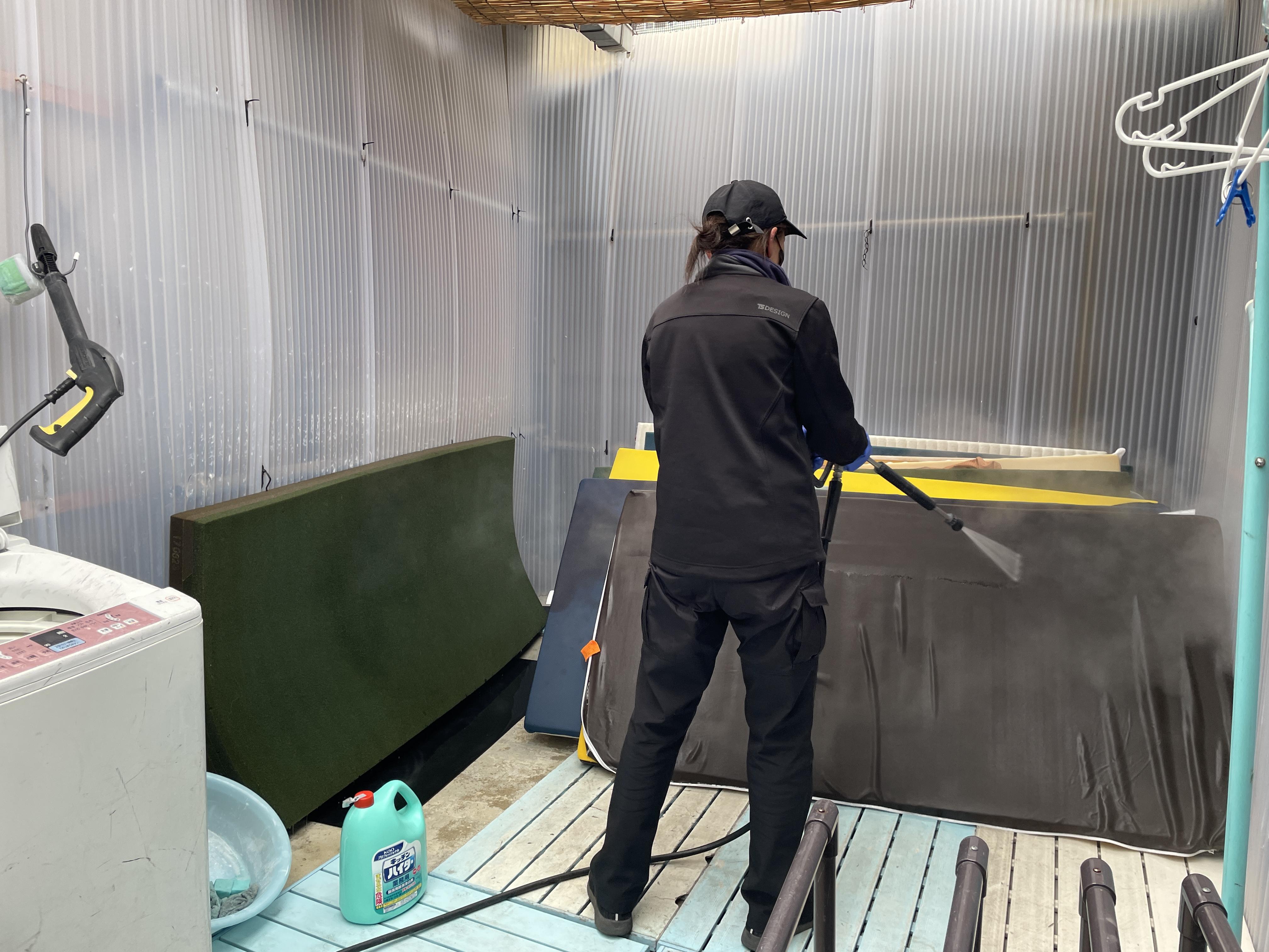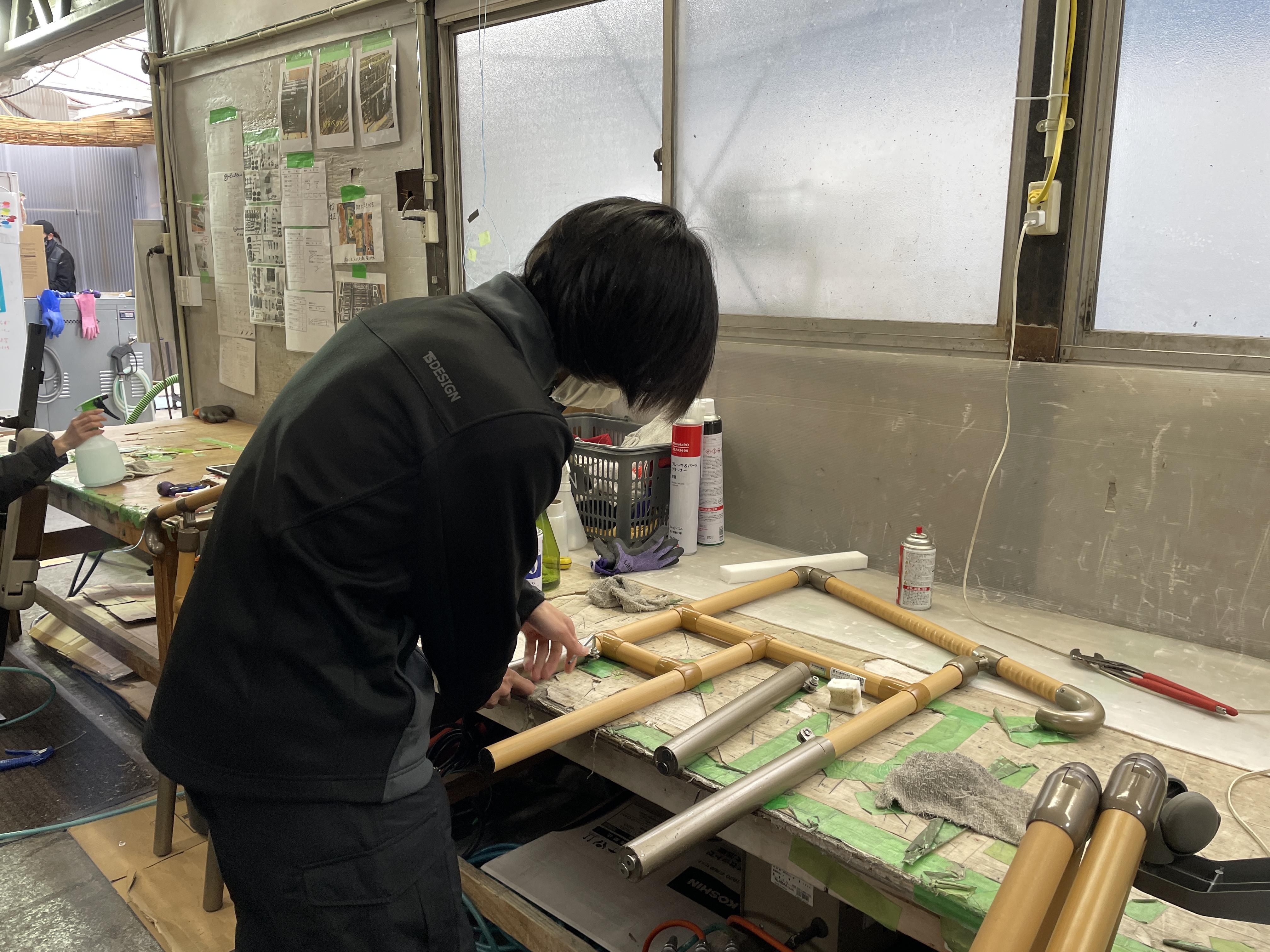 福祉用具を洗浄し、もう一度組み立てて