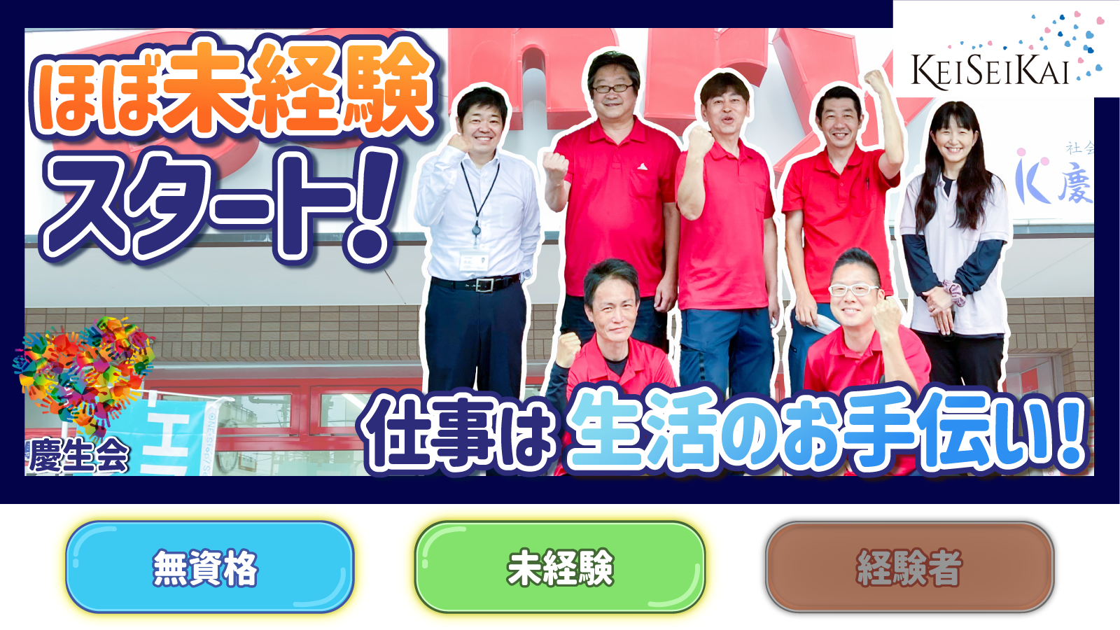 | 待遇及び福利厚生 | 社会保険完備(加入保険は法定通り) 制服貸与 定期健康診断 インフルエンザ予防接種 |