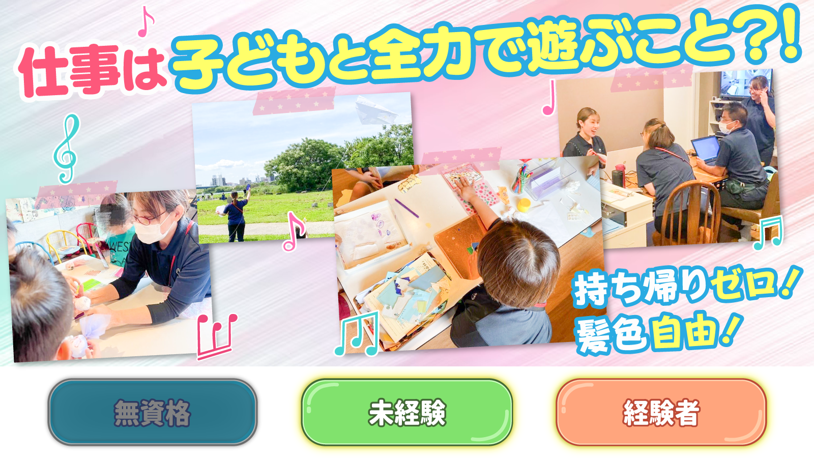 | 対象となる方 | ◎保育士資格をお持ちの方 または児童指導員の要件を満たす方 ◎普通自動車運転免許 必須 ※無資格スタートも可能なのでご相談ください! 未経験・ブランクOK☆ パソコン操作ができる方歓迎☆ |