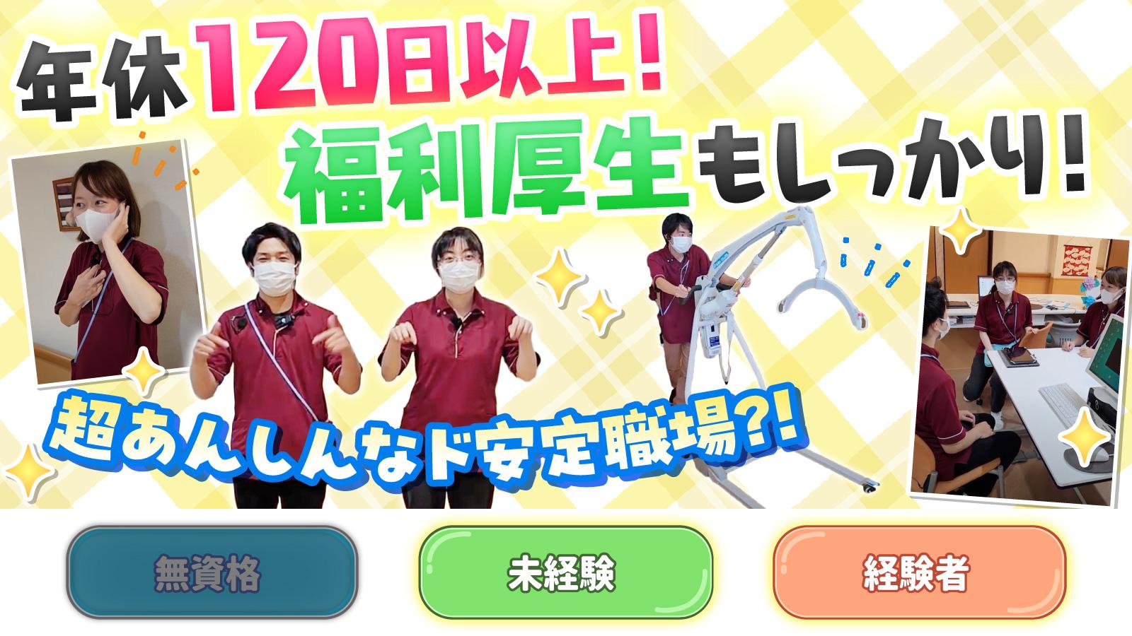 | 仕事内容 | 介護付有料老人ホームでの 介護業務全般をお任せします。 *身体介助 *生活援助 *レクリエーションの企画や実行 など |