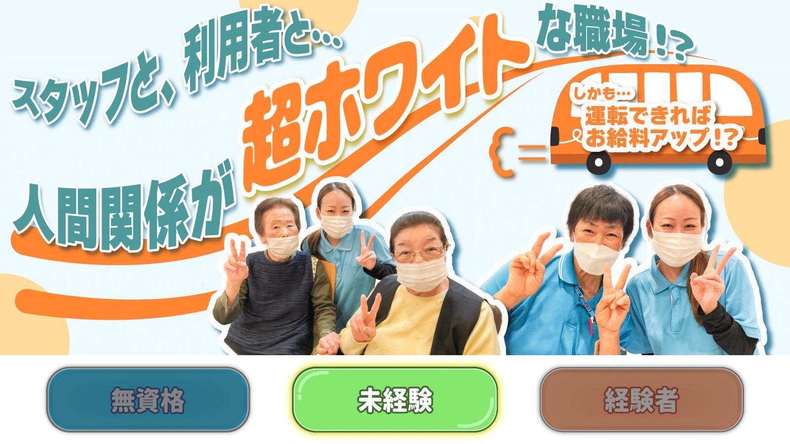 | 対象となる方 | 要普通免許(AT限定可) ※送迎業務があるのでペーパードライバー不可 未経験やブランクのある方も歓迎! |
