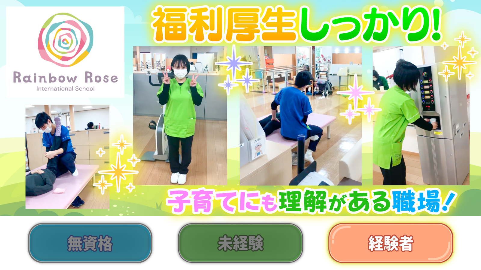 | 待遇及び福利厚生 | 社会保険完備(加入保険は法定通り) 制服貸与 資格取得支援制度 医療費無料 インフルエンザ予防接種無料 子育て支援手当支給 永年勤続祝い金あり |