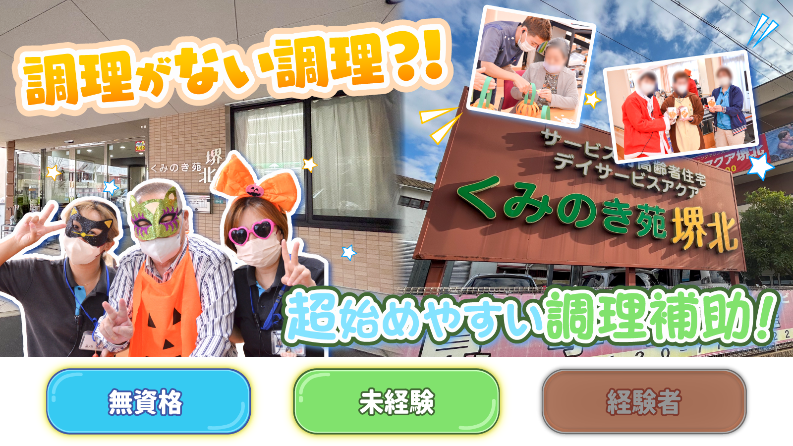 | 求人タイトル | 【くみのき苑堺北】調理補助スタッフ(パート) |
