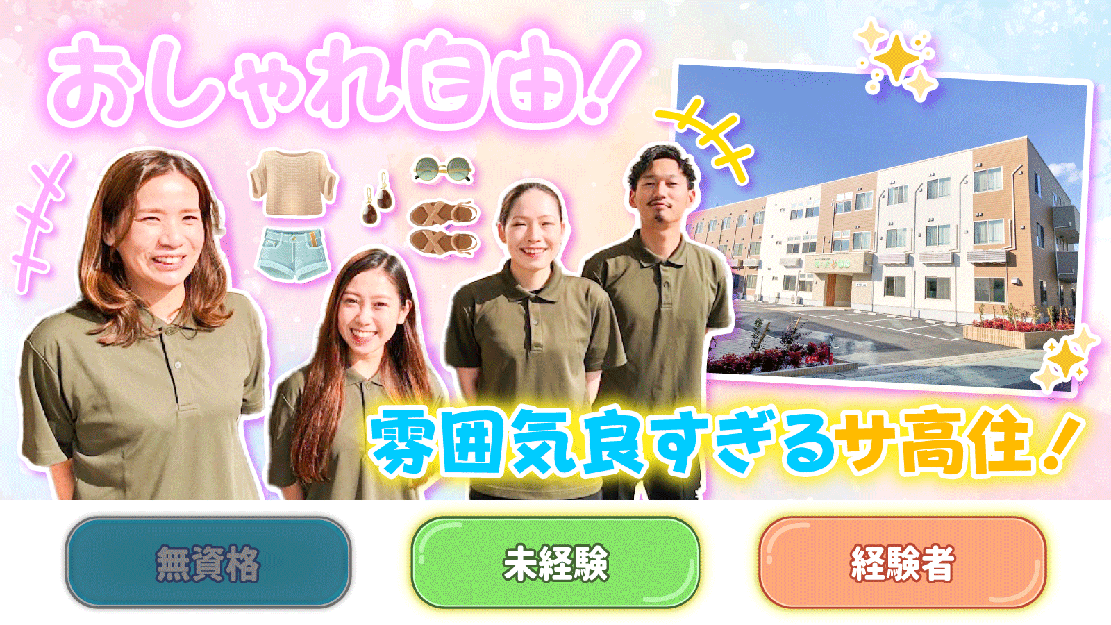 | 待遇及び福利厚生 | 社会保険完備 健康診断無料 資格取得支援制度 正社員登用制度 退職金制度あり(勤続5年以上) 誕生日プレゼントあり 制服貸与(上のみ) 髪型・髪色自由 ピアス・ネイルOK |