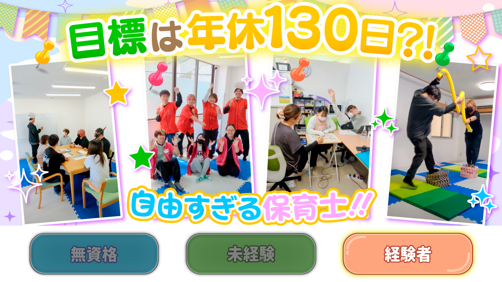 | 対象となる方 | ▼下記いずれかの資格をお持ちの方 *保育士資格 *児童指導員任用資格 |