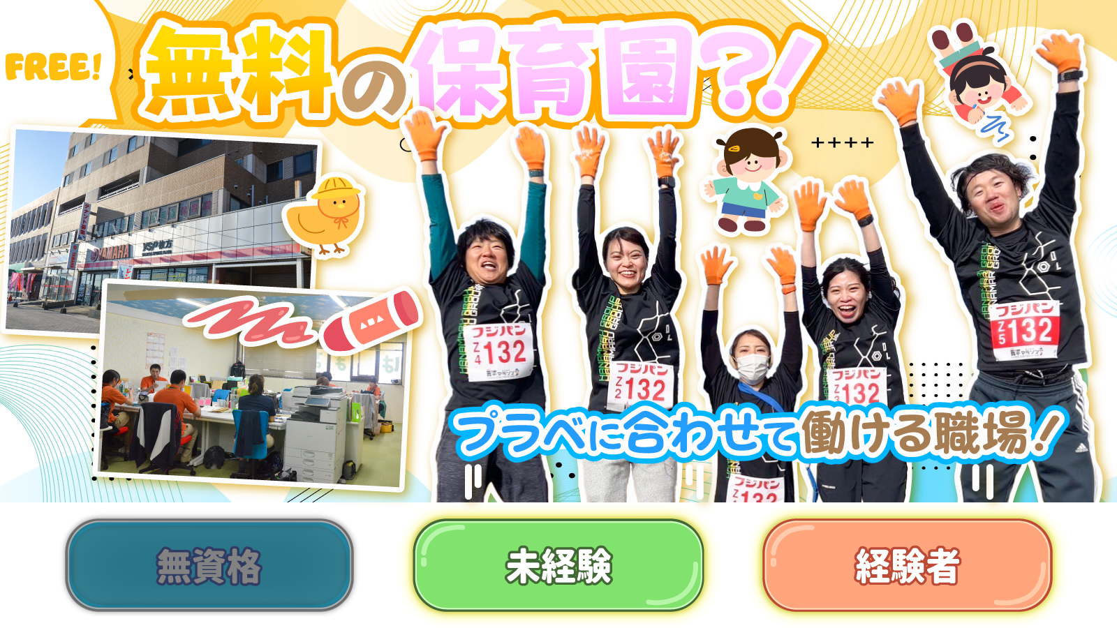 | 待遇及び福利厚生 | *社会保険完備 *退職金制度 ※法定通り *社内保育園あり (0~2歳児対象,利用料無料/週4日以上勤務の方) *制服貸与あり |