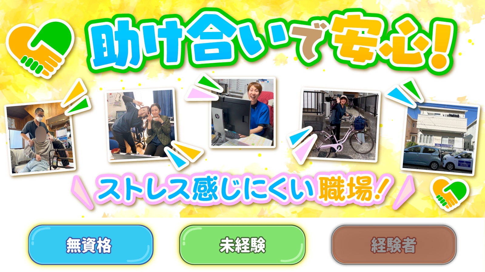 | 待遇及び福利厚生 | 社会保険完備 制服貸与(上のみ) 資格取得支援制度 タブレット又はスマートフォン貸与 お菓子・ウォーターサーバーあり Wi-Fi完備 インフルエンザ予防接種無料 健康診断無料 短時間制正社員制度 退職金制度 慶弔見舞金あり 産休育休実績あり |