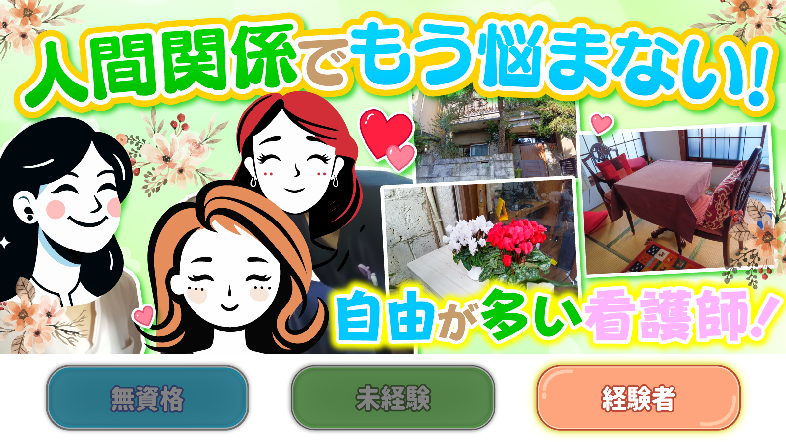 | 対象となる方 | 正看護師または保健師 資格・経験必須 ※准看護師は不可 |