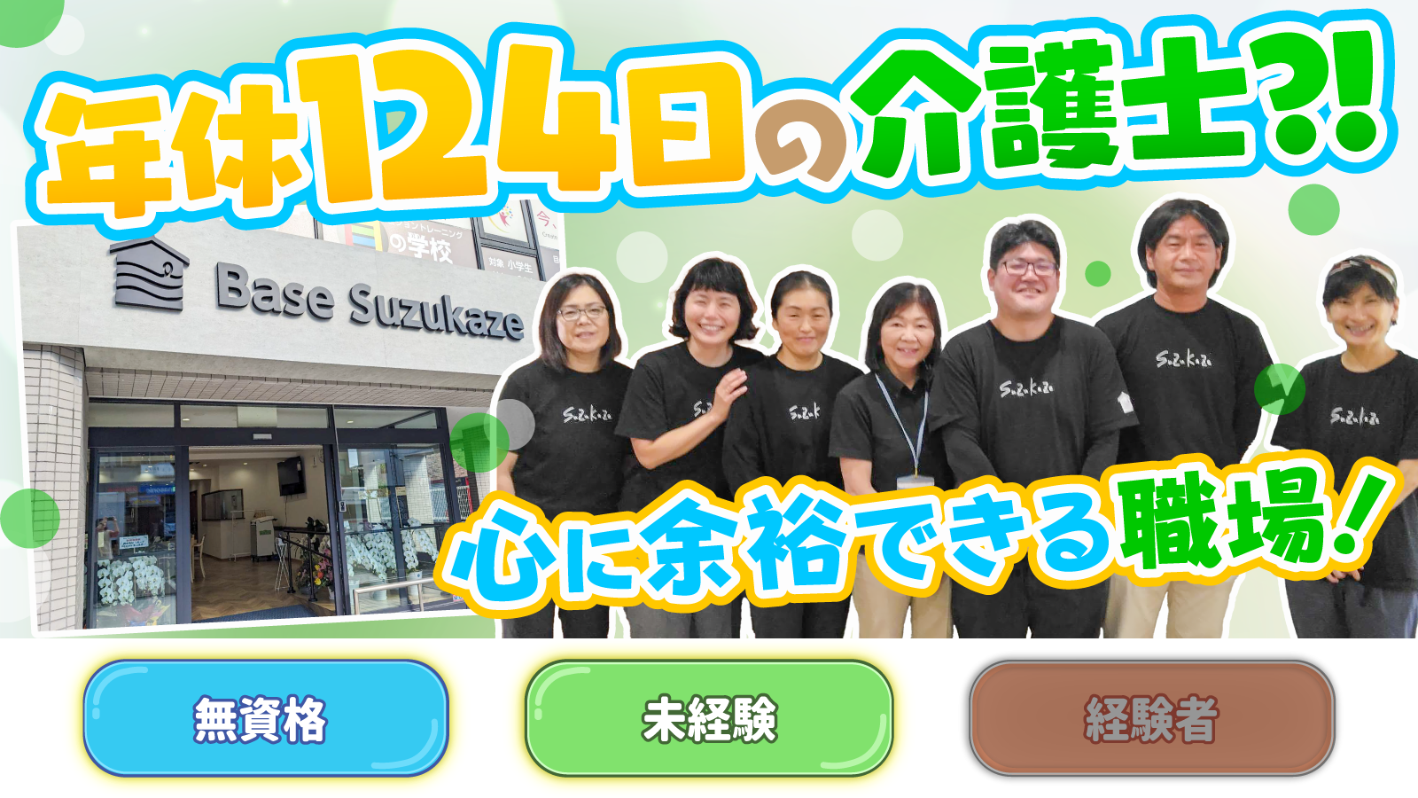 | 求人タイトル | 【Base Suzukaze】介護スタッフ(パート) |
